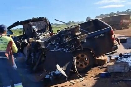 Caminhonete teria invadido pista contrária e bateu de frente com caminhão, vítimas…