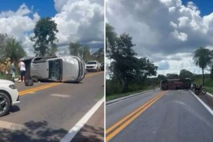 Caminhonete saiu da pista e capotou após motorista perder o controle, cinco…
